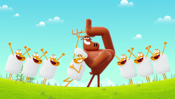 Série d'animationSaison 1 - épisode 55 : Saute-moutonSerge est un pro pour faire rebondir les moutons sur son dos comme un trampoline. Wanda essaie...