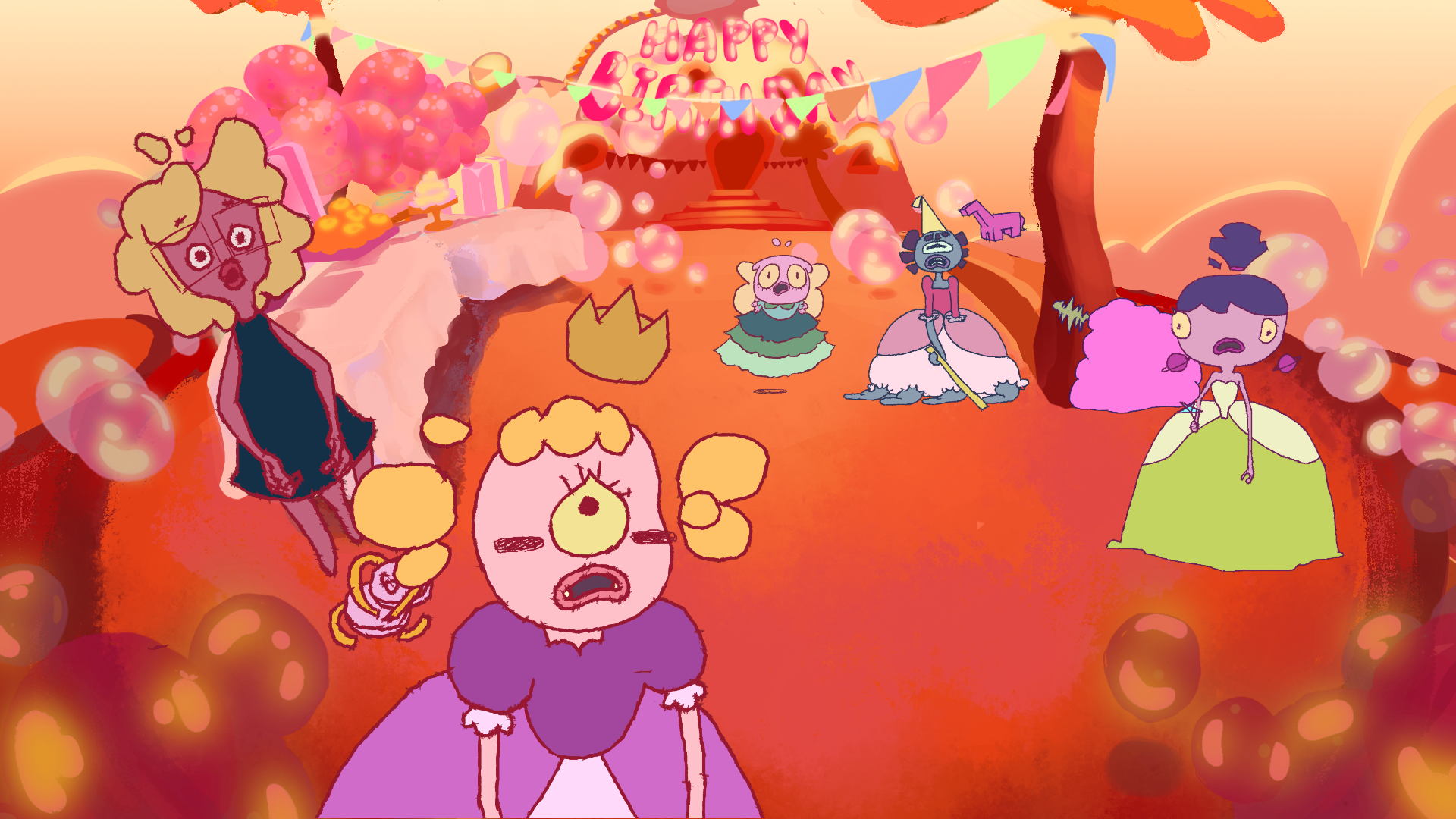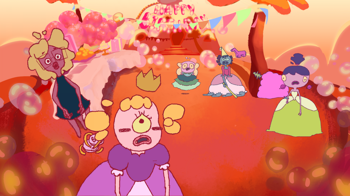 Glou, une petite alien, est invitée à une fête d'anniversaire déguisée sur le thème "princesse". Mais elle décide de se déguiser en humaine, ce qui terrorise ses copines. Au milieu de la fête, un astronaute humain arrive à bord de son vaisseau. Il tombe nez à nez avec Glou, à l'apparence humaine. Il en conclut que cette planète est déjà colonisée par des humains et fait donc demi-tour. Glou est finalement acclamée par ses amies pour avoir sauvé la planète !